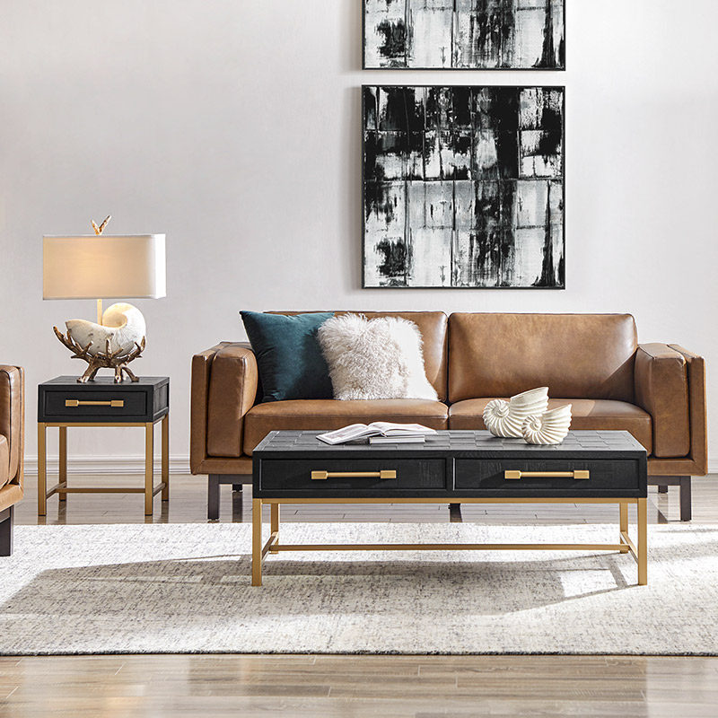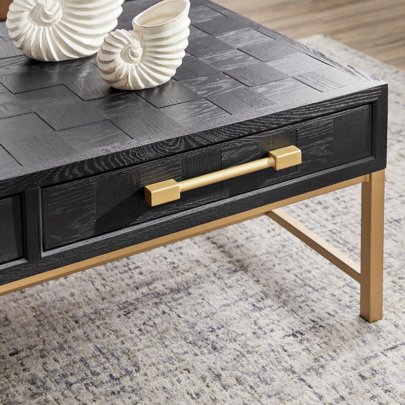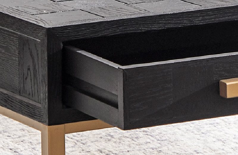 这个茶几整体外观非常的简单,属于一种轻奢简约的古典风格,看起来不像茶几,反而像小时候上课的书桌,但是分量比较轻,占地面积也不大,所以很适合我这个租房党。黑色的木质桌面加上金属的支架,黑金配色看起来也太高级了吧。还有两个小抽屉,放一些小杂物也很方便,可以增加室内储物空间。