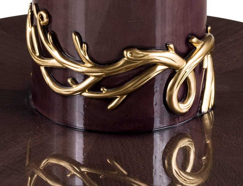 我觉得这个餐桌最优秀的地方就在于它的细节设计真的非常精致,就连桌角这些小细节都照顾的很到位,比如说桌脚加入了枝蔓环绕描金工艺,搭配实木材料看起来别具一格,犹如艺术品一样超级精致。
