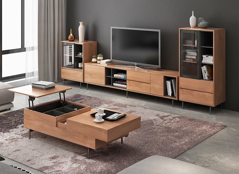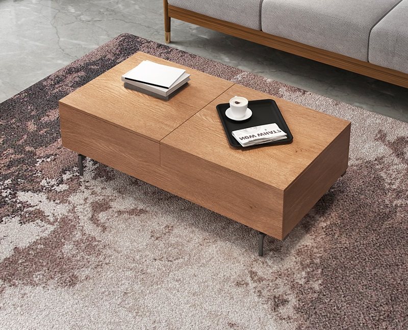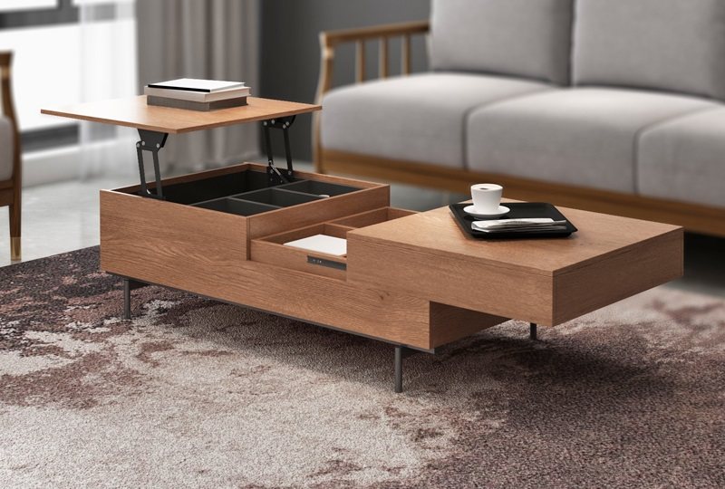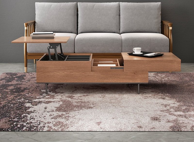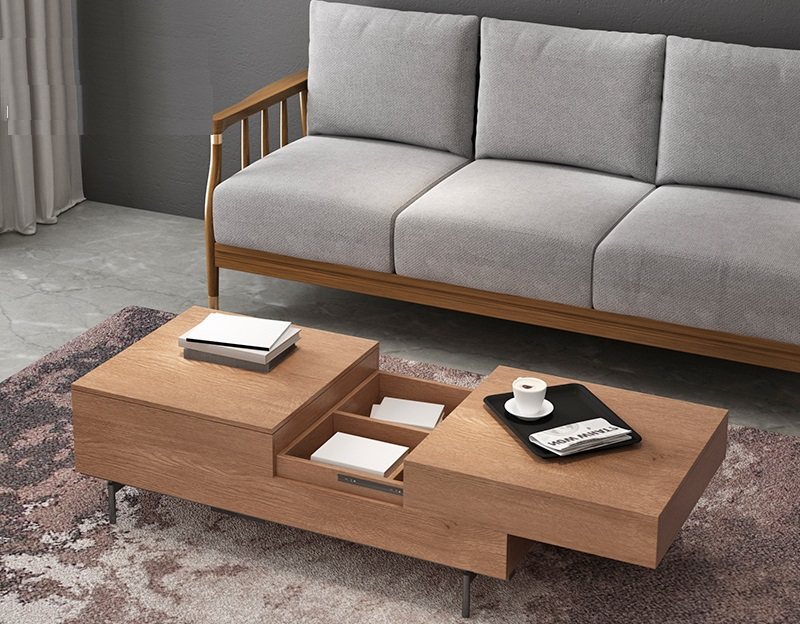 我最喜欢的就是这个茶几的细节设计了。可以灵活升降的面板,使用起来更方便,而且还能够增加储物空间。桌面是可以伸缩移动的,放一些小东西非常方便。