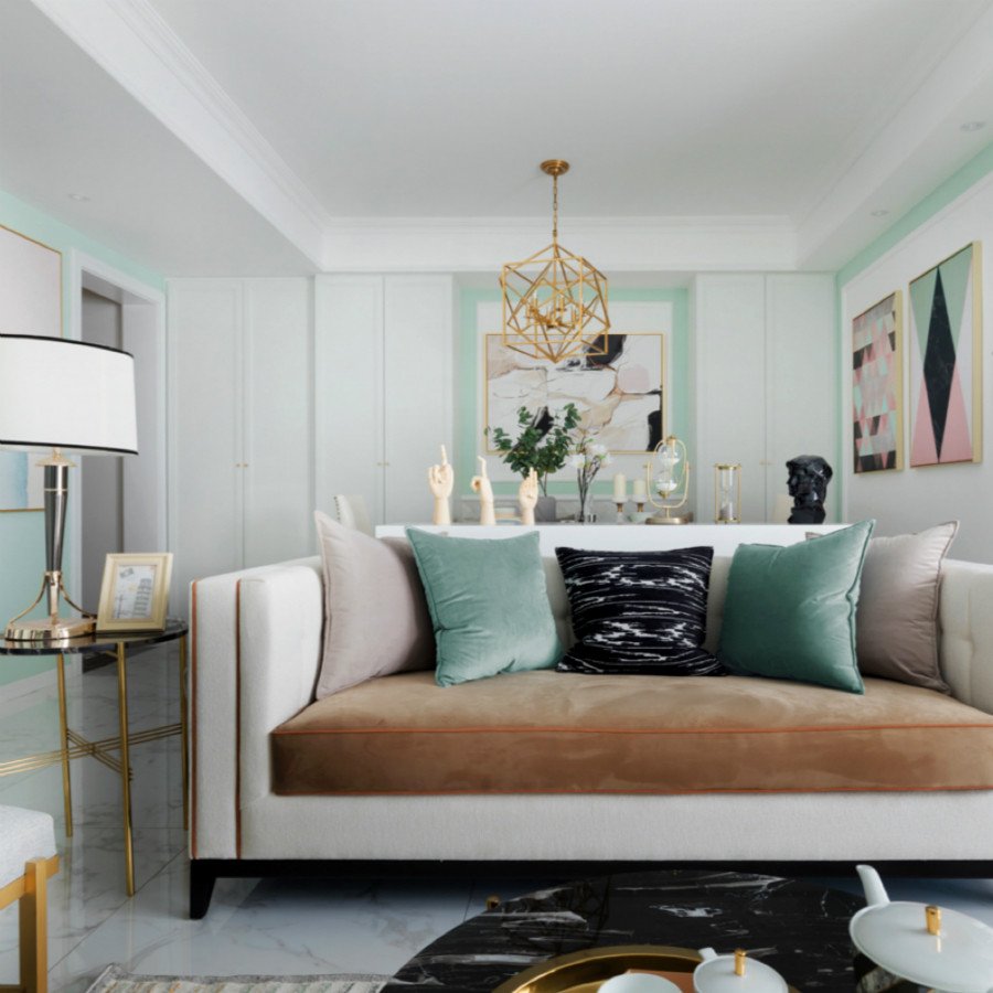 这次我们采用了美式风格和北欧风格的结合,传统的美式风格大多采用木制结构的家具,不太适合成都湿润的气候,所以我们在保留美式风格的温馨上,融入了北欧风清新简洁的特点。