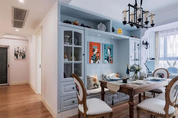 它的样式很多,可以有现代简约型的,也有美式欧式风格的,根据自己家的餐厅风格来设计就好。这里可以摆放一些装饰品,也可以当做酒柜使用,凸显品味,这是一个不错的地方。