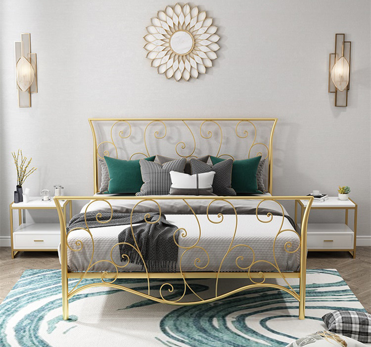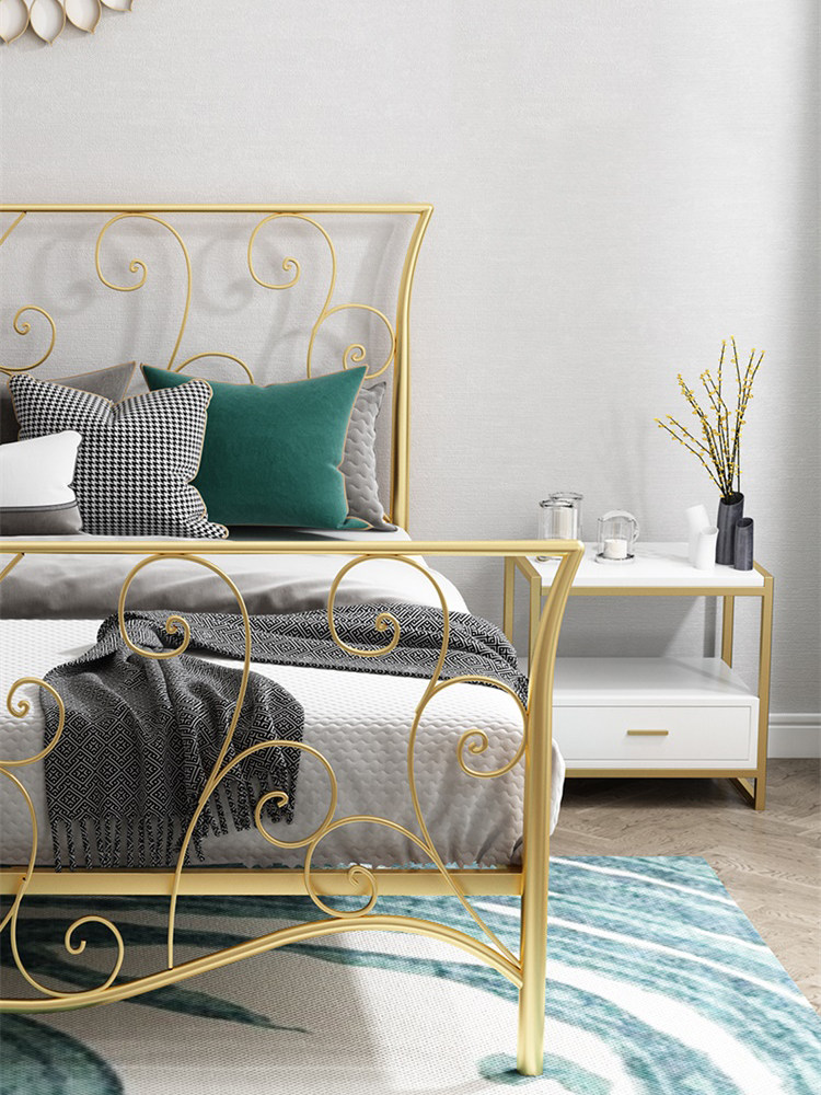 谁说卧室一定非要装大木床,铁艺床好处也蛮多的,相对于普通板材做的床,铁艺床的优点是能够很大程度的减轻室内污染,铁艺床的物理性能,不像木床那样会释放甲醛等有害物质,这一点是非常让人安心的。可能很多人都说铁艺床很单调冷淡,其实铁艺的床的造型也多,有传统的中式、古典欧式、还有现代简约,各种装修也是能轻松hold住。