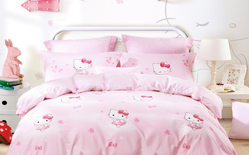 这款全棉磨毛四件套,小清新风格设计,hellokitty图案点缀,趣味感十足。精选天然棉料为材质打造,经过多道环保工序处理,保留其天然纤维,亲肤透气,全棉纤维有一定的含水率,柔软不僵硬,让人感到舒适惬意