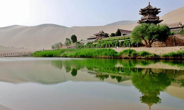这个充满“争议”的景点就是位于甘肃敦煌市的“月牙泉”,这个终于不只是存在我记忆中的景点坐落于鸣沙山的北麓,它是一个在沙漠中自然形成的湖泊,因此很多人都称它为“沙漠的奇迹”,而它的名字也是因为它长得极其像月牙,所以才得此名的。这个闻名于全球的景点即使过了数千年依旧还是保留着原始的面貌,但是直到20世纪初的时候,月牙泉出现了“危机”,由于当地村民填河造田和抽取地下水,导致当地的地下水严重流失,这也直接导致月牙泉的水位逐渐下降。