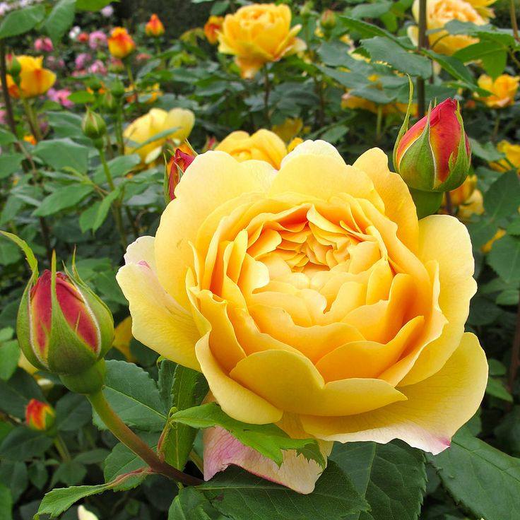 它的颜色是非常亮眼的黄色或者是橙色,像这样的色彩和花型在月季中是很抢眼的,如果能种在花园里一定可以增色不少。