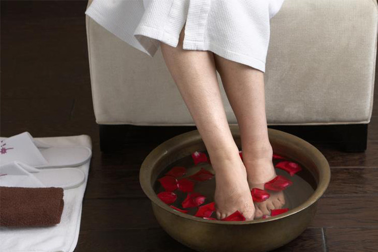 挑好了工具,接下来就要做好美足准备。只要准备好38°~41°的热水、沐足桶和精油等沐足物品,并将水位保持在脚踝再向上大概一拳的位置,就可以通过泡脚泡软足部角质,这样就做好美足准备啦。而泡脚时间为15~30分钟为较好,既泡软了足部角质,又能怡神养身。