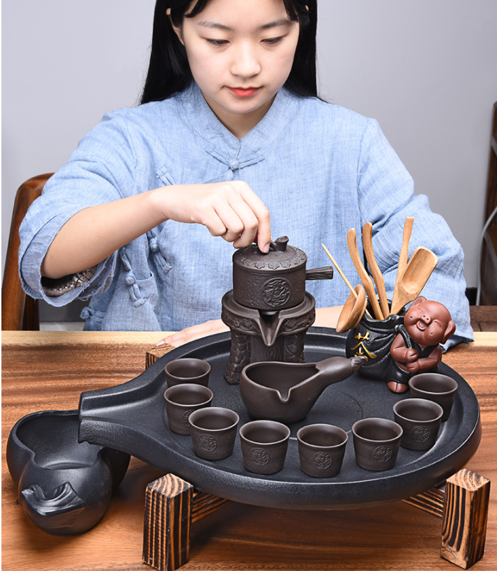 这款茶盘的外观是一个创意的圆形,没有多余的赘饰,点更清晰,线条更细,比例更好,弧度完美,给人一种非常利落大方的感觉,令人一见倾心。采用了流水式排水,水流随着盘的出水口流到接水的容器中。搭配自动茶具,泡茶更有一番韵味哦。