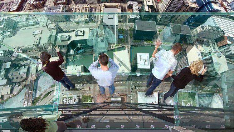 芝加哥观景台坐落在威利斯大厦的103层,观景台的突出部分是个离地一千多英尺的延展台。感受360度全方位的景观,周围五十公里的风景都尽收眼底。