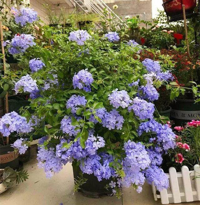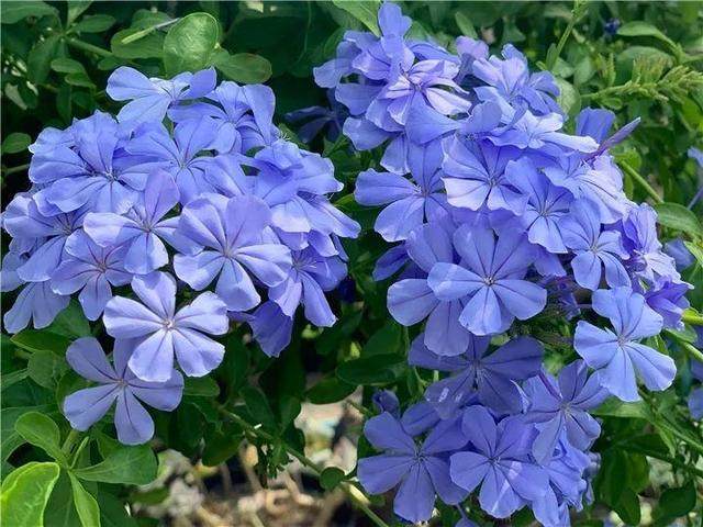 蓝雪花生长速度很快,只要有阳光,花苞一串接一串,天天都能有花看,地栽和盆栽都可以,既能当灌木养,又能当爬藤养,相当给力了。