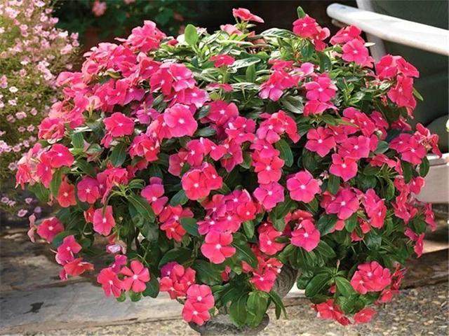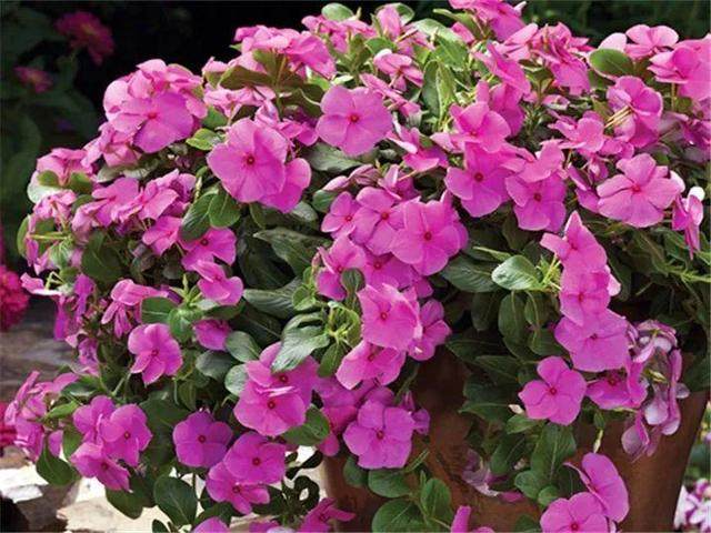 长春花四季都能开花,花朵精致美丽,而且它不招虫也不爱生虫,非常适合家里或者庭院养。