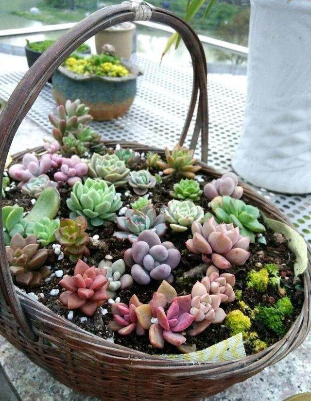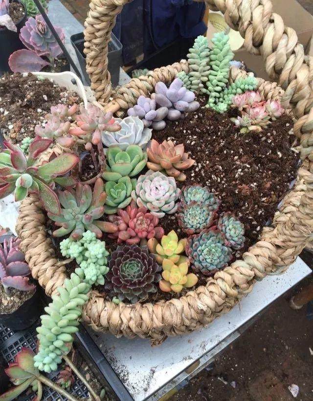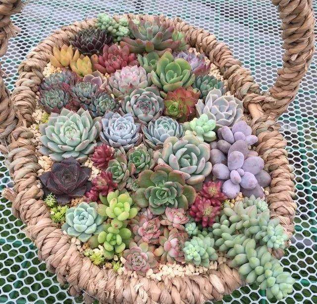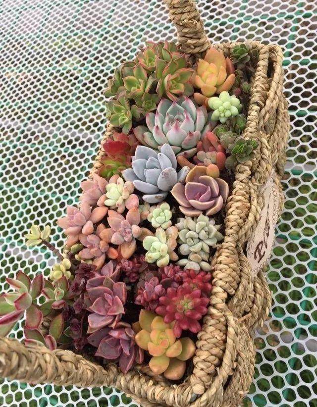 奶奶逛街买菜的菜篮子,添点土栽几颗多肉,瞬间变身高档的多肉花盆,简直让人爱不释手!