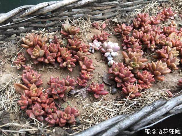 4、准备疏松透气的营养土,铺在篮子里,之后将多肉挨个栽种在篮子中。在种的时候,大家可以将大颗的多肉放中间,容易爆盆的多肉放侧面,这样完全不耽误彼此生长。