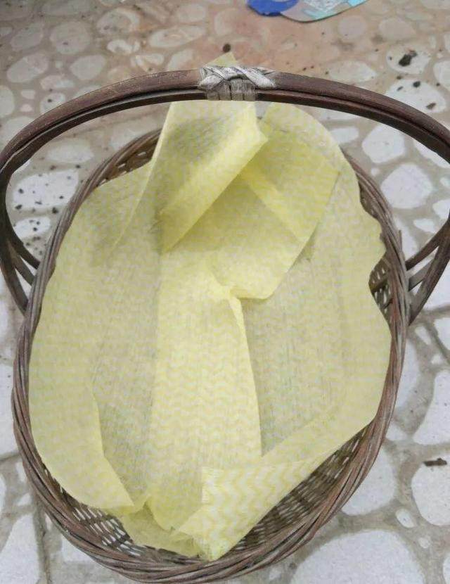 2、找几张无纺布,或是塑料袋,铺在篮子的底部,但是要注意,不管是铺什么,一定要疏松透气,防止闷坏根系。