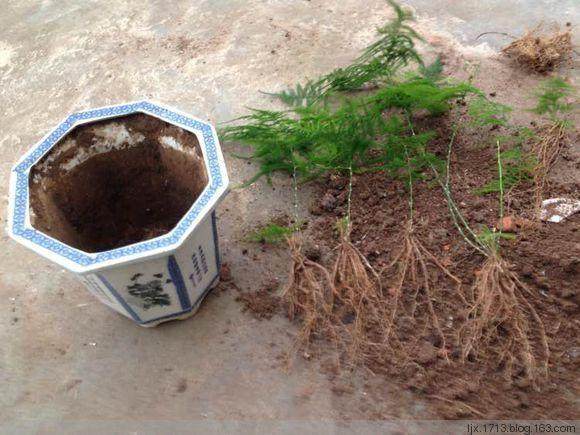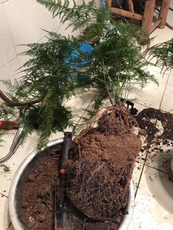 文竹容易野蛮生长,如果有2年没换过盆,粗粗细细的根系就会在盆里盘得满满的,透不过气来,这个时候赶紧换个盆,把根系分一分,一盆就能分出好几盆,一下子就赚啦!