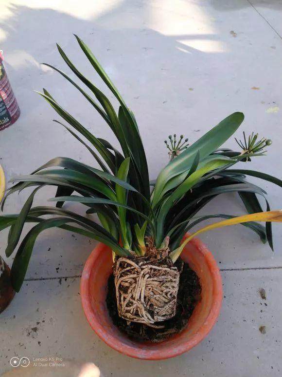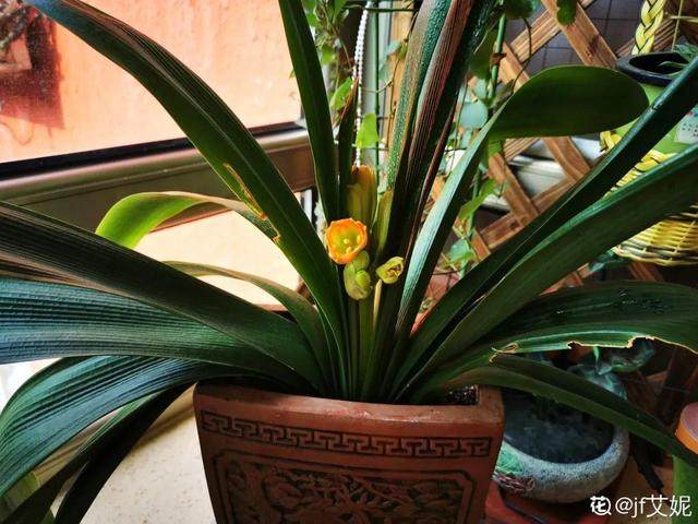 如果室内没暖气,冬天要休眠,记得放在温度最低的地方,偶尔给点水,根别干瘪了就行;开春后气温回升,浇透水就能出花箭。