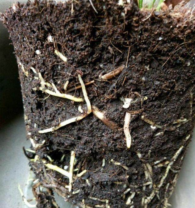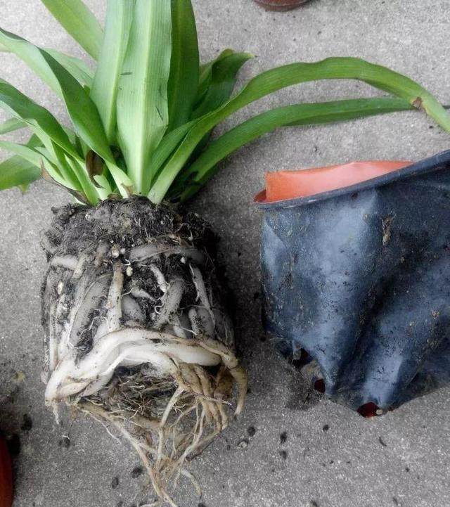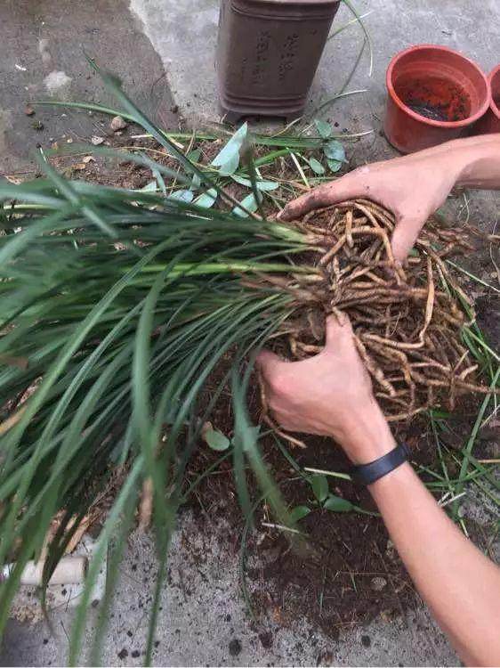 1、已经长满盆的兰花,脱盆时不要强行拔出,伤到根系就得不偿失了,应先把土壤晾到半干,松动表土,一手握住兰草,一手敲击盆壁,把植株连根带土取出来!