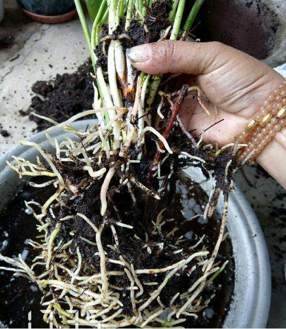 1、先把整棵植株脱盆取出,根部土壤打散,有些很难分开就用水冲,冲得差不多了,再用手把侧芽掰开。
