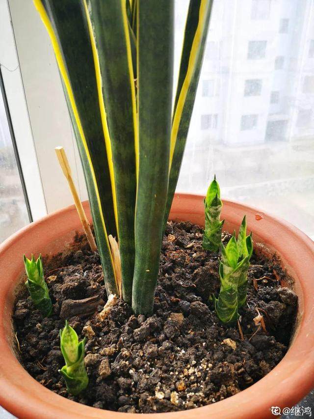有些品种的虎皮兰特别喜欢挤在一起长,动不动就爆侧芽、挤满盆,这个时候把侧芽掰下来移栽,轻轻松松一盆变多盆!