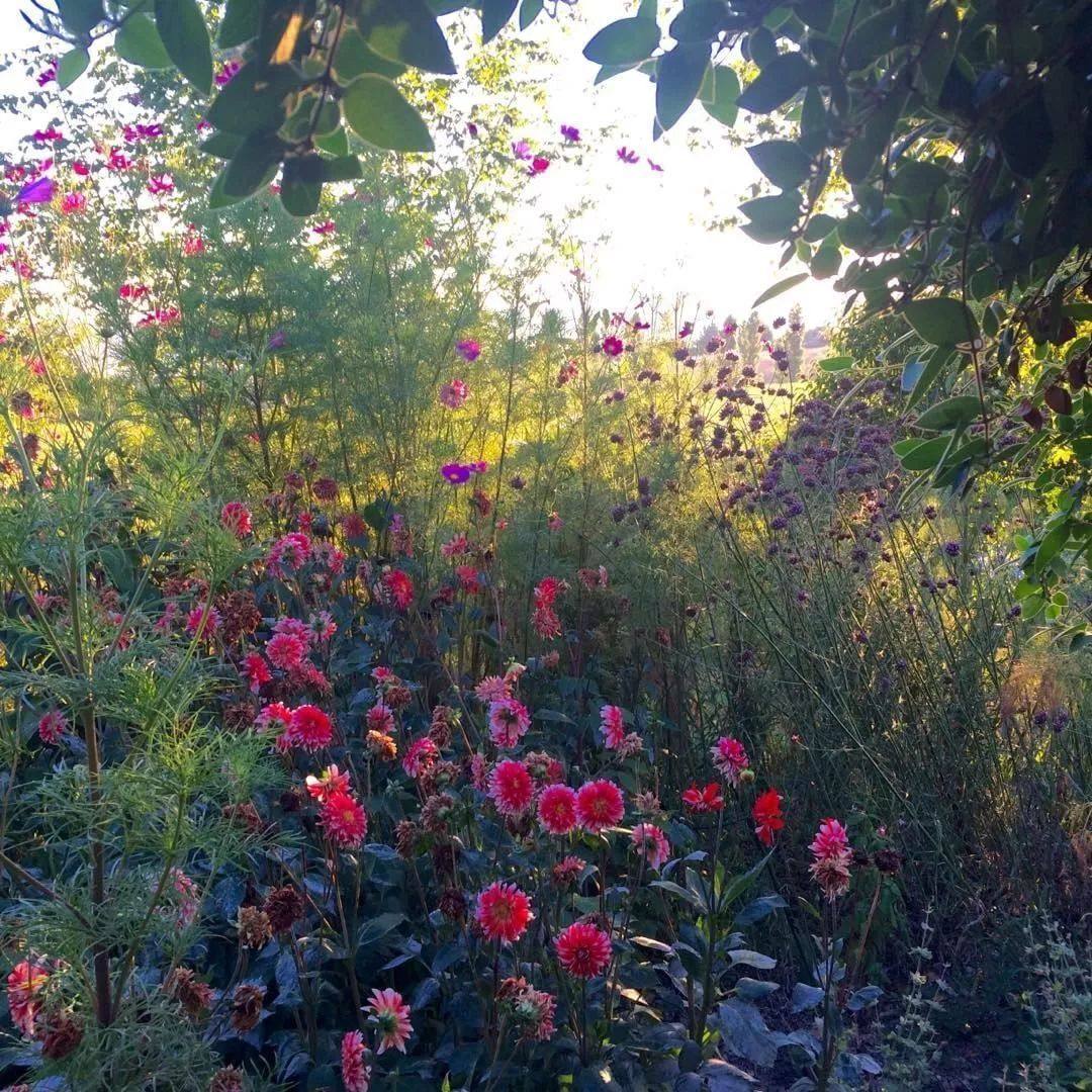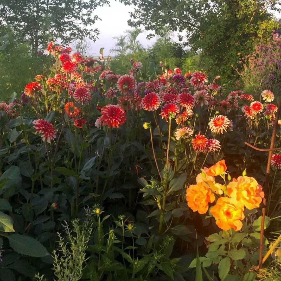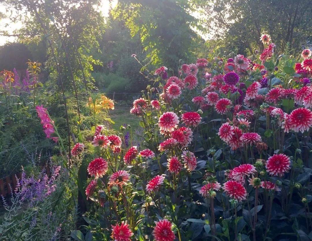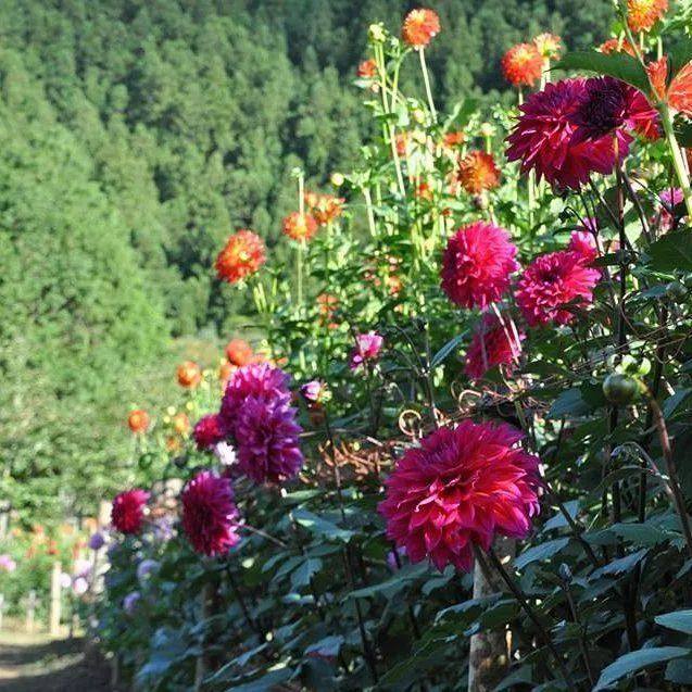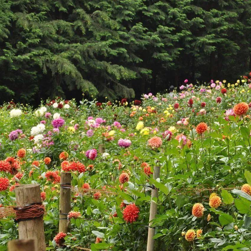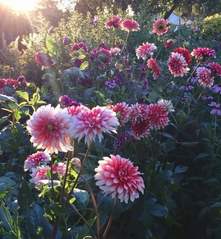 大丽花色彩极丰富,……选择两到三种不同花色混种,整体和谐不突兀,又能令人惊艳。大丽花的花期很长,一年开三次花,观赏期可以从6月持续到12月,9月为最佳观赏期。