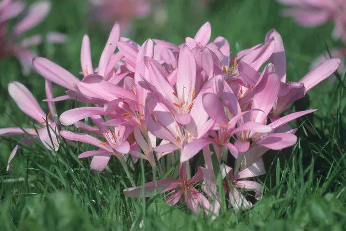 2-秋水仙也可以地栽,大片大片地开花后,视觉效果不错,不过要注意可能会有蜗牛啃食叶子。