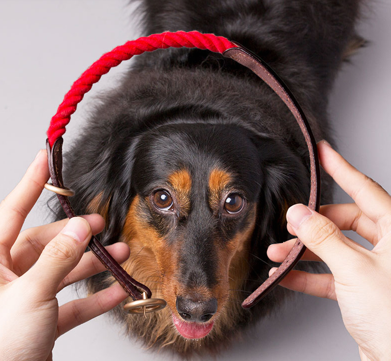万物一库的项圈用上乘的牛皮制作,项圈内没有夹层也不拼合。实打实的牛皮材质,结实又有质感。圆润细腻的定制锌合金做了无误伤设计,不会给狗狗带来伤害。项圈的设计也是非常独特,红绳于牛皮的搭配,既有惊艳又不失质朴,让铲屎官们在一眼就能注意到自家的狗狗。