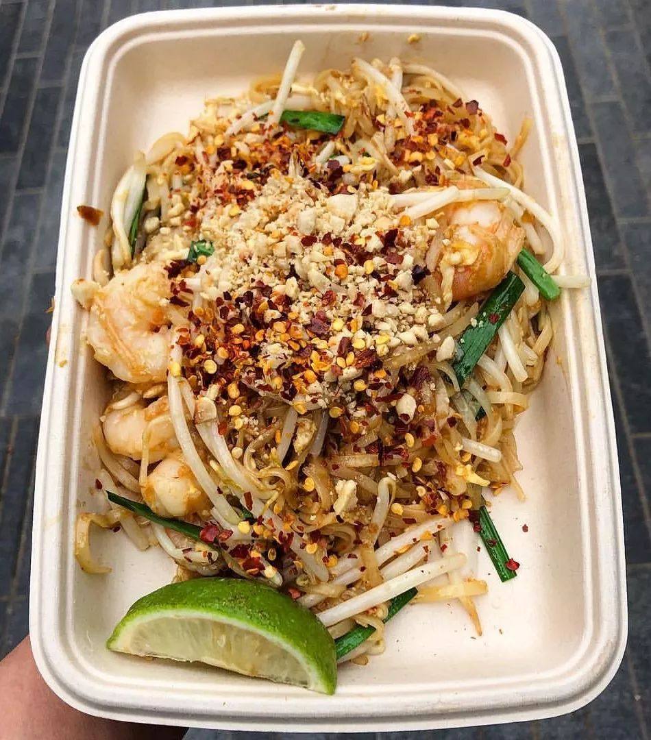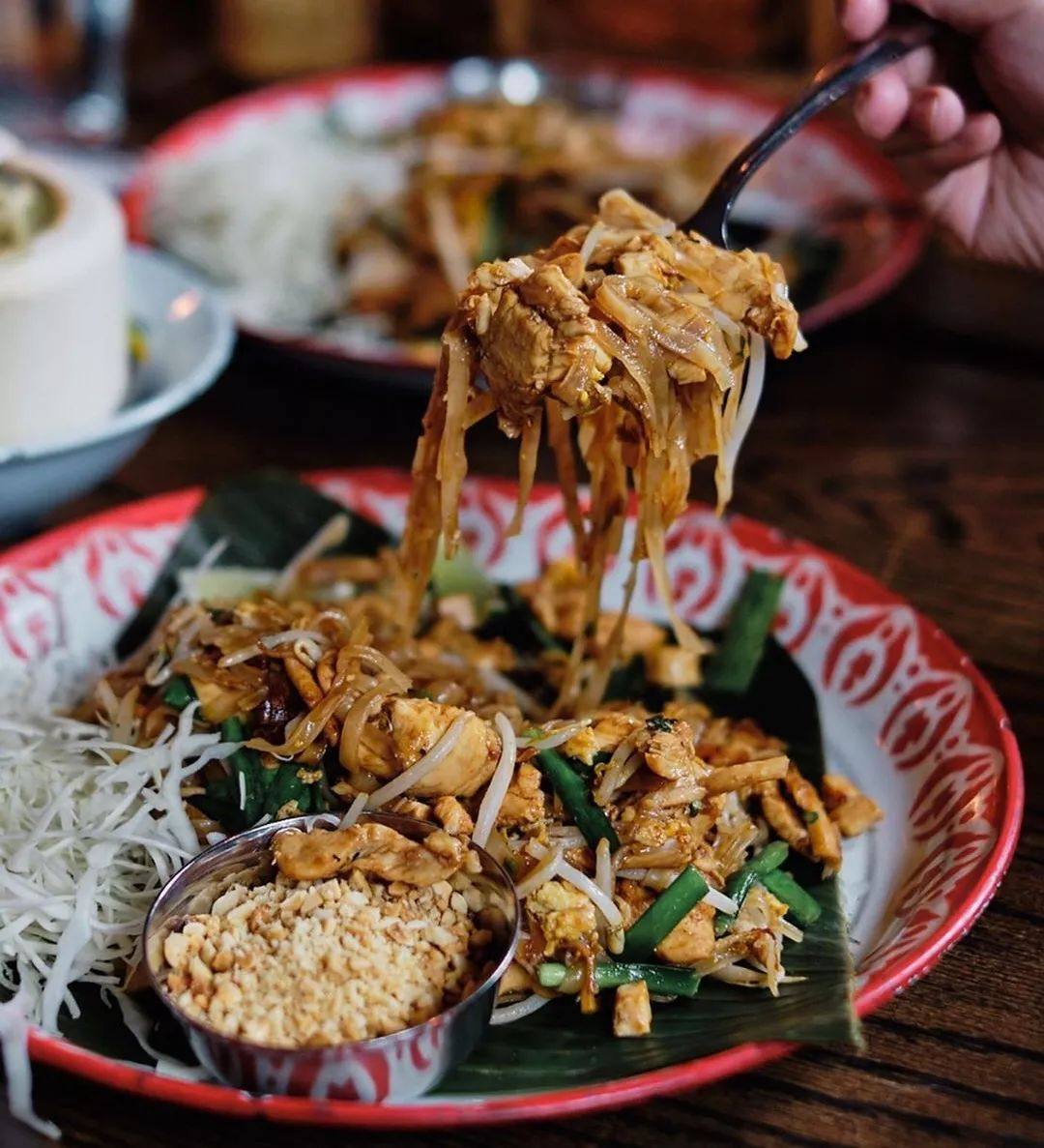 炒粉( Pad Thai )应该算是泰国传统街头元老级的食物了, Pad Thai 的特别之处在于它的粉劲道有韧性,味道偏甜,会加入柠檬汁、花生脆、鲜虾一起翻炒,最后放入生豆芽和韭菜,各种食材在相互碰撞之后,最终都会和谐相处,口感升级,好吃又顶饱。需要注意的是,吃 Pad Thai 一定要在街边摊位吃才地道,大概50泰铢就能吃到。