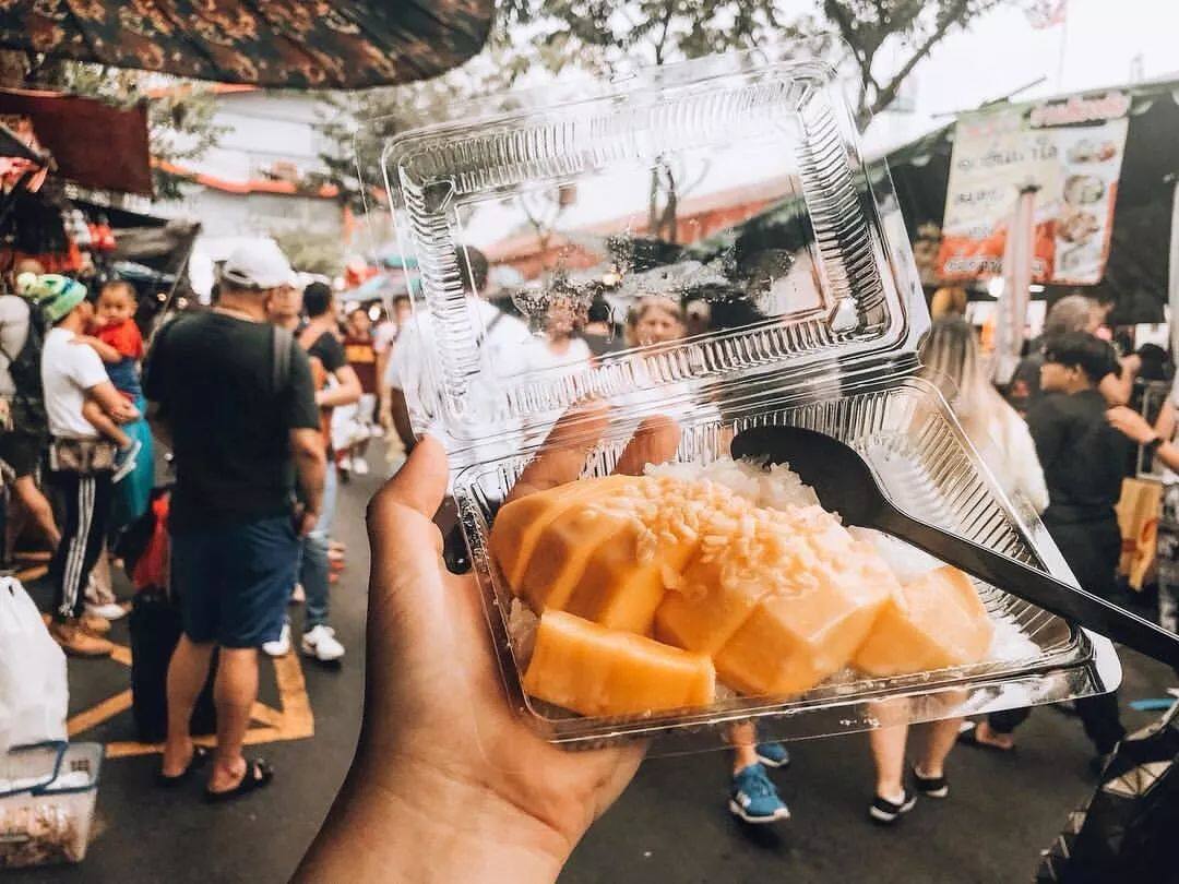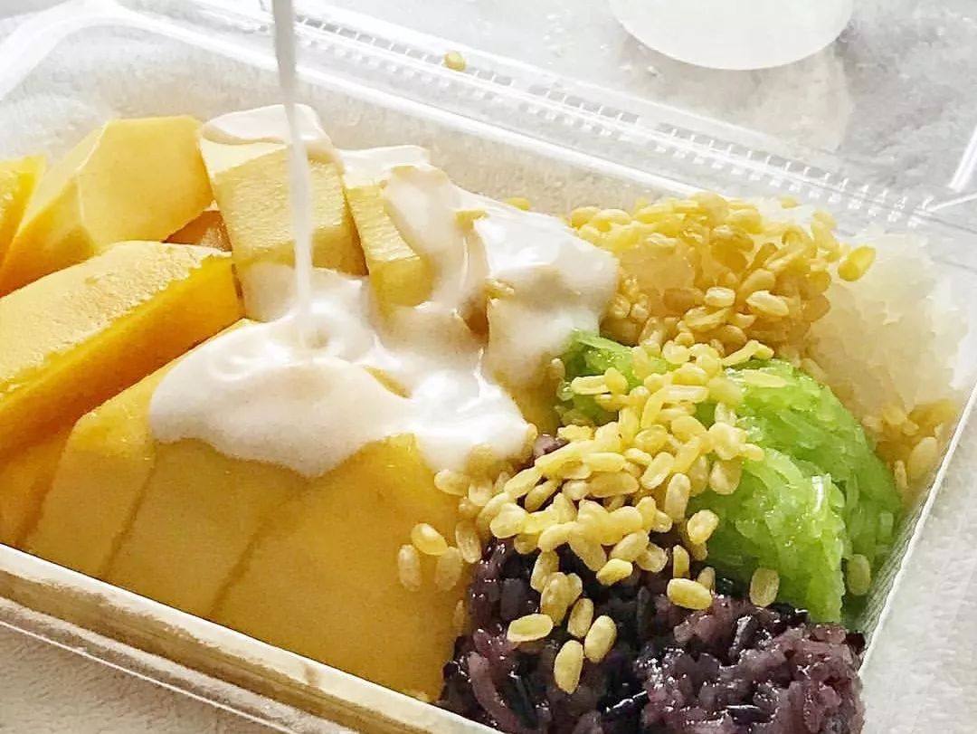 芒果糯米饭、泰式烧烤、油炸食品的...