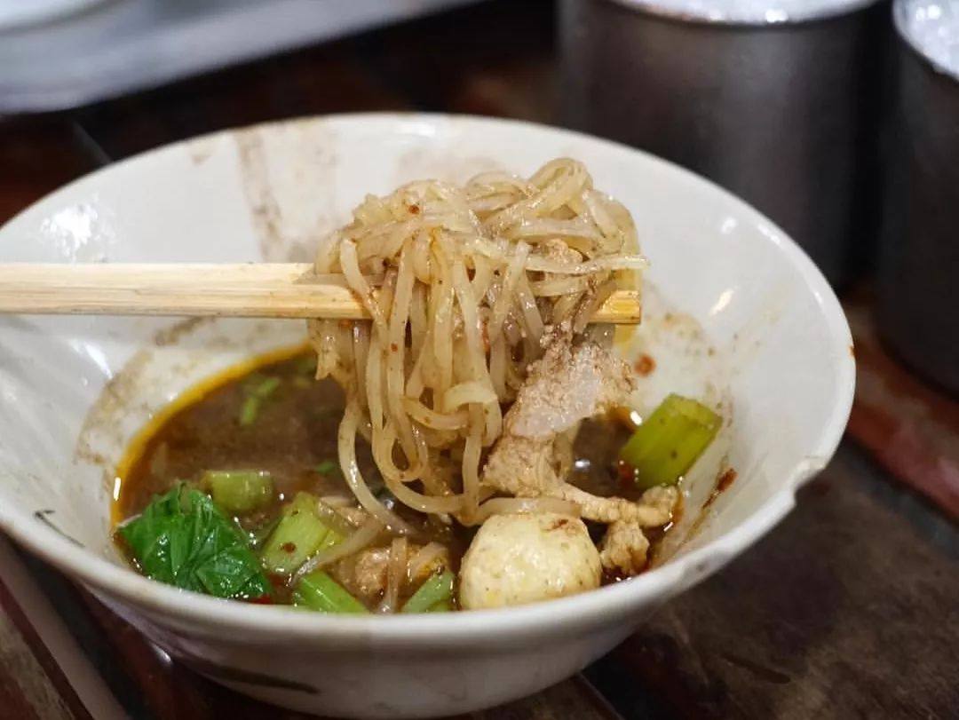 泰式汤粉/面是喜欢嗦粉的小伙伴必吃食物,当地有很多面摊,面条的种类主要分为宽面、细面、油面和米粉,点餐的时候可以根据自己的喜好来点,配料通常都很丰富,有鸡肉、牛肉、鱼肉、丸子类、猪肝等可等等,此外还会有豆芽、薄荷叶等蔬菜,汤的口味也可以根据个人喜好选择清汤或具有泰式特色的酸辣汤,闷热的街头来一碗冒汗的汤粉,搭配一杯冰饮料,相当酸爽了。