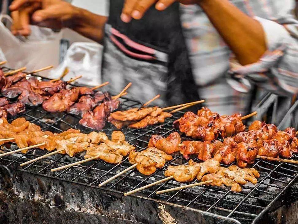 夏日和啤酒烤肉必须是最佳夜市搭档。泰国的烤肉串也是值得一吃的夜间食物,肉串会提前用秘制酱料腌制,然后在炭火上烤,在火上发出滋滋的声音,渗出浓郁的香气,晚上的街边随处都能闻到,让人难以抵抗。除了肉串,还有各类海鲜、烤鱼、鸡肉、动物内脏等等,蘸上泰式辣椒酱,“泰”独特,“泰”美味。