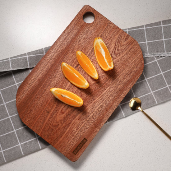 优选天然松木原料,历经高温高压压制而成,食品接触自然健康,乃是厨房里不可多得的好物,密度高韧性好,自然不易开裂,且敲到好处的硬度切割顺畅又不伤刀,贴心的环形导水槽设计,汁水不外流保持台面干净,圆形挂孔不仅方便持握且收纳更顺心。