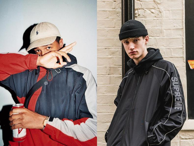 撞色运动夹克和小时候穿的校服有着异曲同工之妙,不仅给人感觉青春活力,还洋溢着浓浓的复古和情怀。下身搭配别具特色的串标牛仔裤或者运动短裤,都很有青春阳光的校园学长feel~