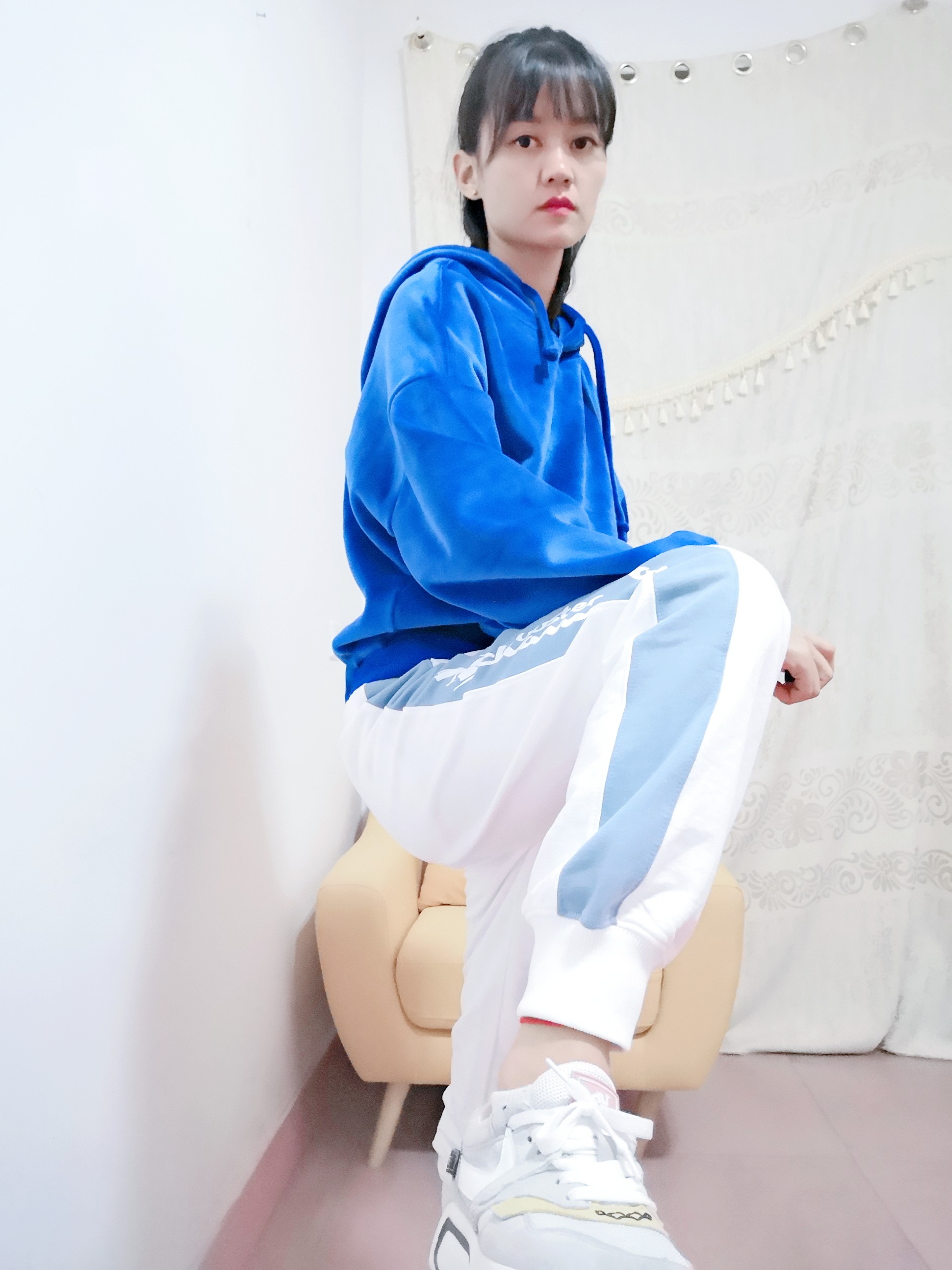 出游想要穿出元气满满的造型,运动装当然最为合适啦,白色运动裤加连帽上衣组合,让你套上就能美美的出门,裤子的侧面拼接蓝色竖条纹时髦更显瘦,作为户外造型,鞋子也不能太马虎呢,外出搭一双运动鞋更抢眼。
