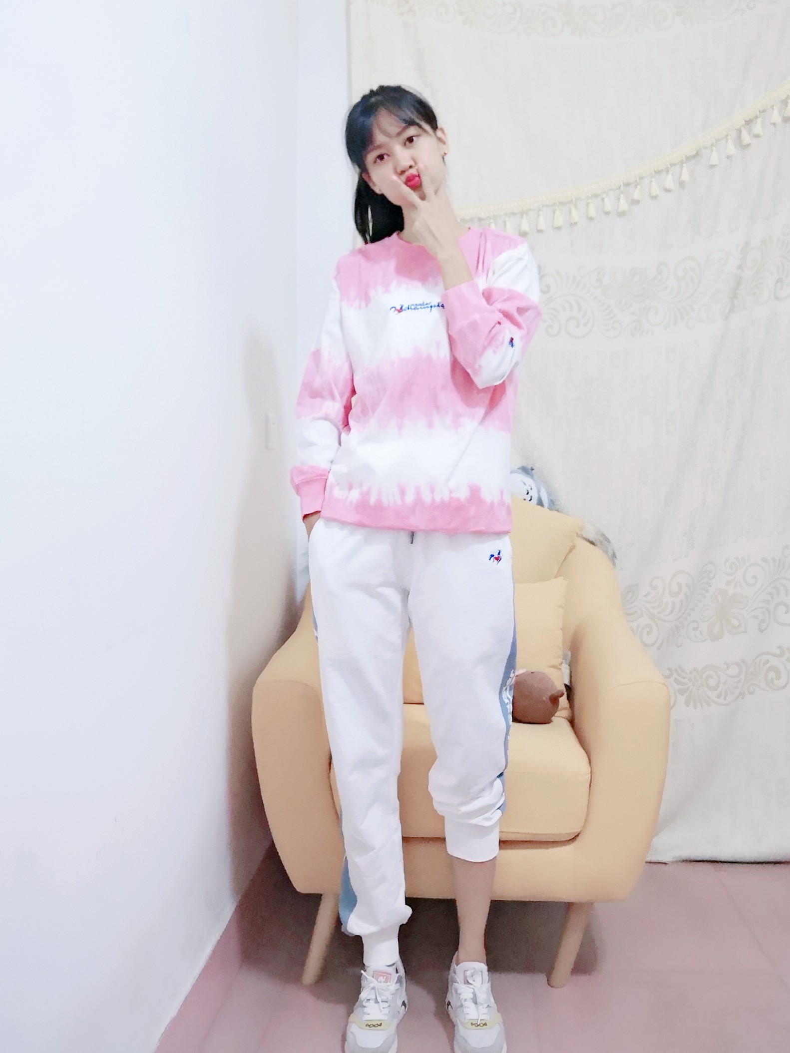 这款法国公鸡品牌的卫衣,将扎染与渐变色完美的融合,时尚又个性,精选优质的面料,穿着舒适透气,搭配上一条白色的休闲运动裤,彰显时髦的学院风。