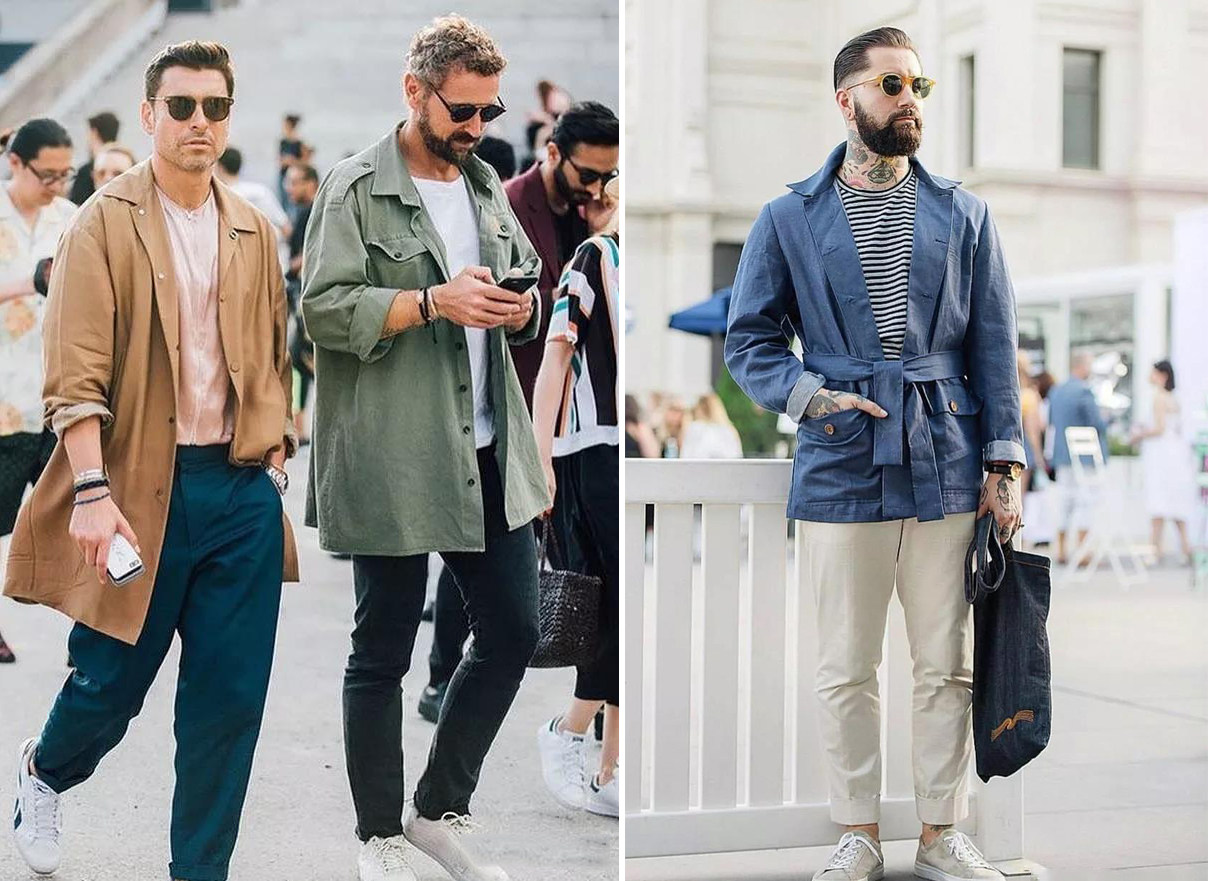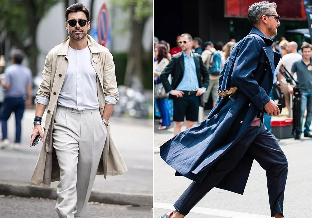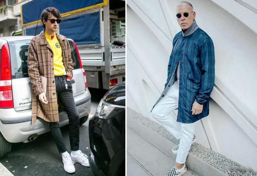 很多人对风衣的刻板印象,是因为在英伦街拍中,很多绅士都是风衣+衬衫西裤搭配的,看上去比较古板拘束。那我们不妨换个思路玩混搭,将内搭换成T恤或者针织衫,下装换成牛仔裤,脚上的皮鞋用sneaker或者小白鞋代理,轻松减龄又别具街范。