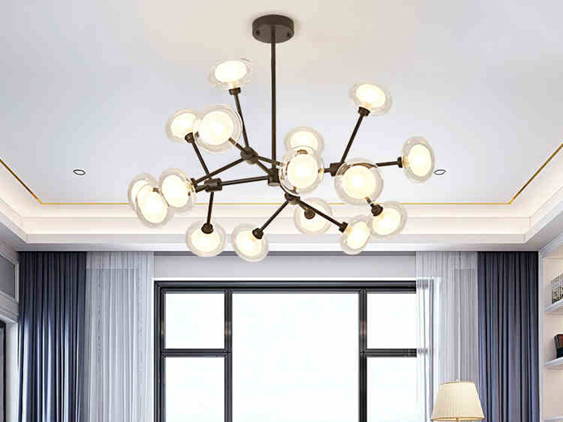 北欧风魔豆吊灯,优美造型设计装饰时尚客厅,看起来雅致不俗,装饰出有趣味的客厅空间,一个个灯头像是水晶球一样,唯美浪漫。手工吹制高透玻璃,透光柔和不刺眼,呵护双眼健康。