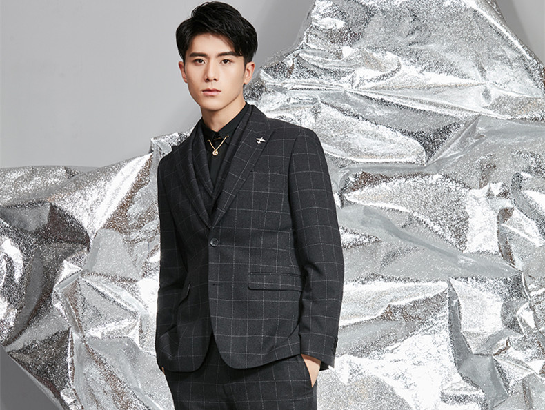 推荐理由:这款修身格子西服套装三件套,从上到下的格子色调,给人一种沉稳大气的感觉。领口在西装的基础上没有花哨的点缀,给人一种轻松自然的灵动感。