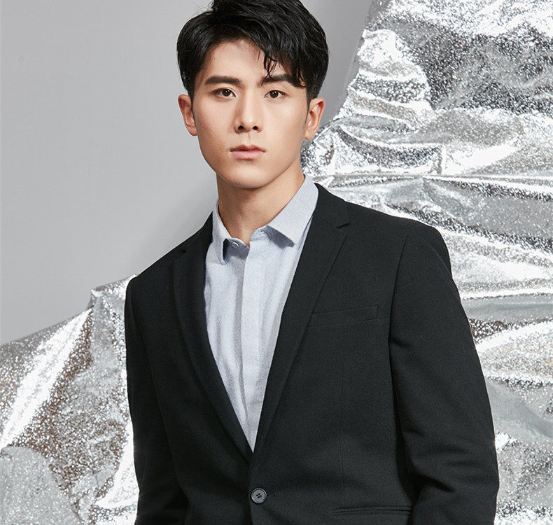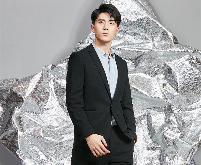 要想摆脱保安和保险员形象,可以尝试用黑色西装与其他单品搭配,比如浅蓝衬衫,显得绅士又清新,让黑色西装看起来清爽很多。