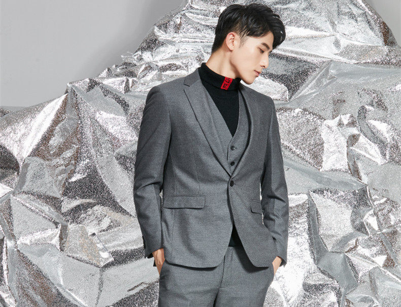相对于黑色的洗练,灰色西装更加低调儒雅,更能凸显含蓄雅致的绅士气息。在搭配上,灰色的西装也更跳脱一些,可以试着与高领针织衫进行穿着,会有意想不到的收货哦。
