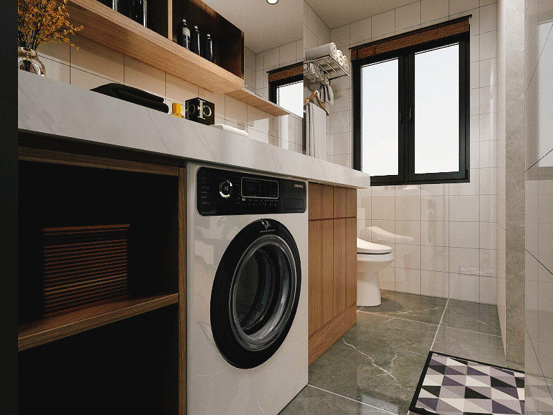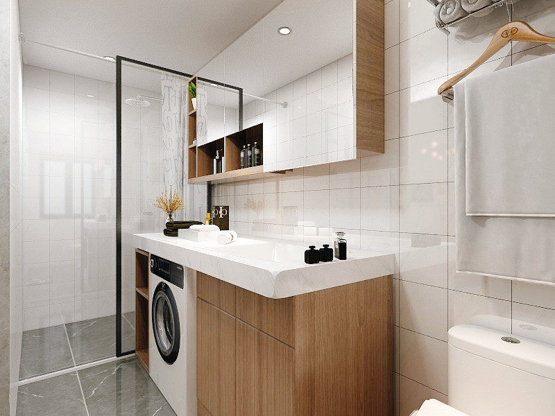 卫生间放洗衣机放浴室柜,这种落地式的一定就要做好干湿分离。另外如果卫生间东西多,镜柜的出现也能帮助我们收纳很多瓶瓶罐罐,会更加好用!