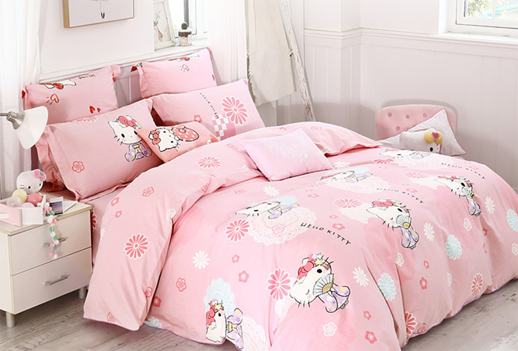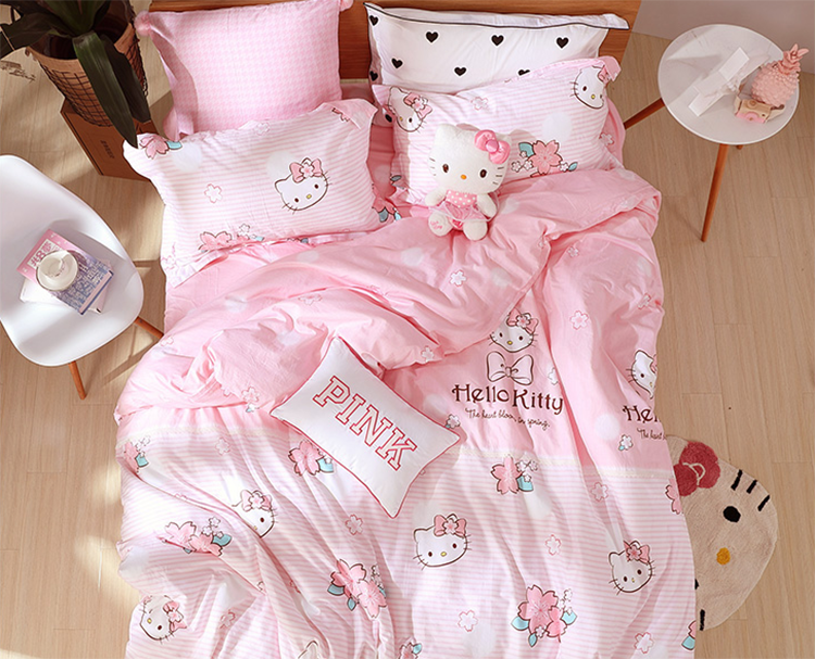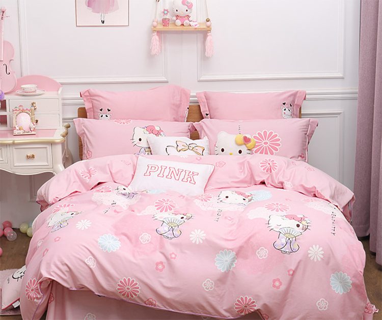 每一个女孩子不管到了多大的年纪,内心总是会充满了少女心。其对于hello kitty这样的造型,基本上没有任何的抵抗力,将它融入到四件套的设计当中,简直就是直接戳心的感觉。粉粉嫩嫩的色调看下来就十分柔美,就算是没有其他多余的点缀,也会别有一番风情,营造出浪漫的气质。
