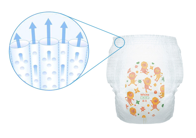 妮飘这款whito系列夜用婴儿内裤型拉拉裤,无论是透气性,还是吸湿性都是不错的选择,它运用了绗缝技术,面组状的沟槽部分,能迅速将尿液吸入到尿布里,并均匀扩散到整个吸收体,大大提高了它的吸收性。