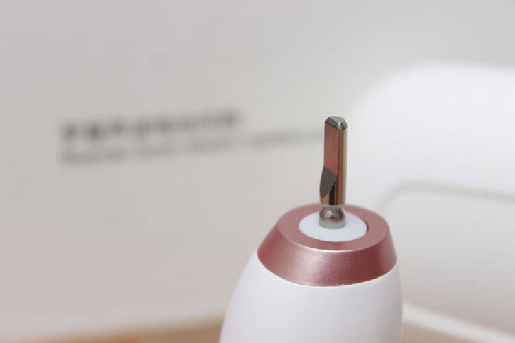 主机是玫瑰金和白色的拼接色,在连接上刷头之后,仍能感受到不低的颜值,正面采用的是光亮镜面,三种模式指示灯以及电量显示,牙刷的中间部分有一个功能键。