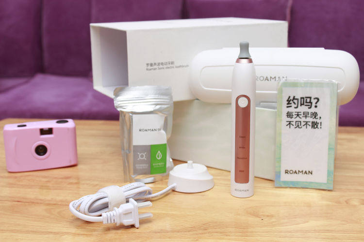 这款电动牙刷叫ROAMAN,直译为罗曼,通过包装可以了解到,采用白色外观的这款牙刷给人一种简约干净的风格~