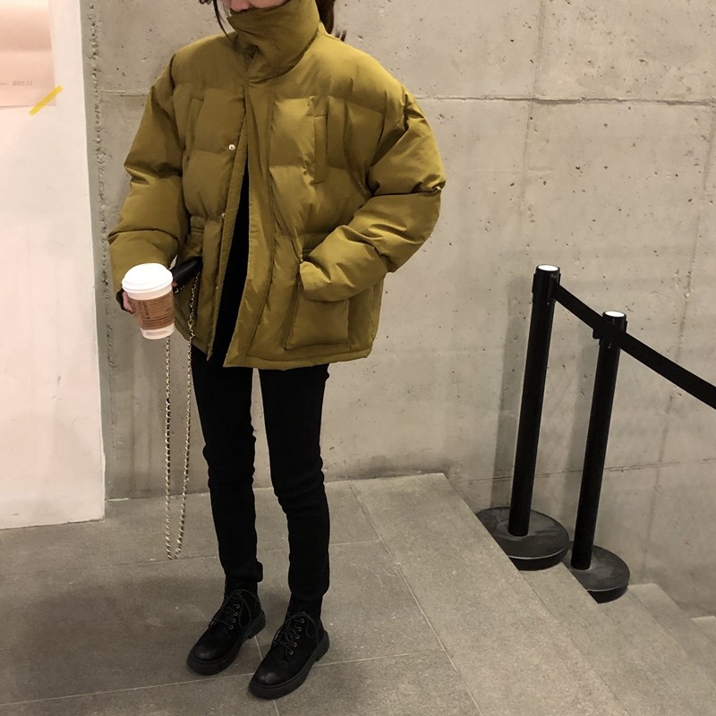 加薄棉的设计,很适合初冬的时候去穿。立领连着一起把脖子也温暖了,上身还有些小酷帅。当然冷冬的天气也可以穿,里面穿一件厚实毛衣就可以。足够宽松的版型,能把衣服包容下。拉链+按扣的双重门襟,更加方便穿脱。前排两侧胸部处都做了侧口袋的设计,超级有细节感。下摆两处还做了两个书页口袋,插兜放东西什么的很方便,宽松oversized的中长款版型,遮肉显瘦狠适合各种身材的姐妹去穿。除了百搭的黑色 还做了很特别的酒红色还有咸菜绿搭配一条白色休闲裤超级时尚啦~