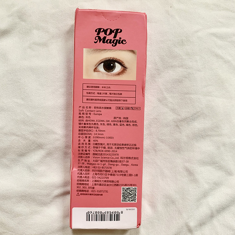 对于很多美瞳新手宝宝们来说,经常会陷入一个误区,认为美瞳的含水量越高越好。其实并不是这样的,美瞳的含水量过高更容易引起眼睛的干涩,不适合长久的佩戴。并且,含水量过高的美瞳容易吸附更多的蛋白,给美瞳清洁工作带来一定的麻烦。popmagic家的这款美瞳在含水量上分为38%和40%两款,都属于含水量比较低的美瞳,但是这两个数值的含水量是最适合长时间佩戴的,经过试验,也是我们戴起来最舒适的含水量。