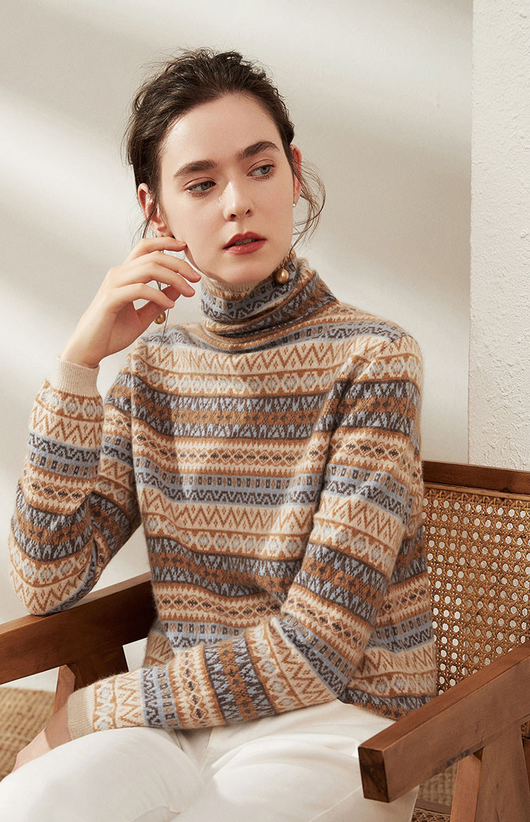 甄选阿拉善盟山羊绒,纤维强力适中,富有弹性,山羊绒具有重量轻、柔软、韧性,贴身穿着时,轻、软、柔、滑,非常舒适羊绒衫贴身穿,堆堆领复古几何设计,简约大气更显瘦,山羊绒材质,手感温润,它的细腻程度,会让你一穿就沦陷。