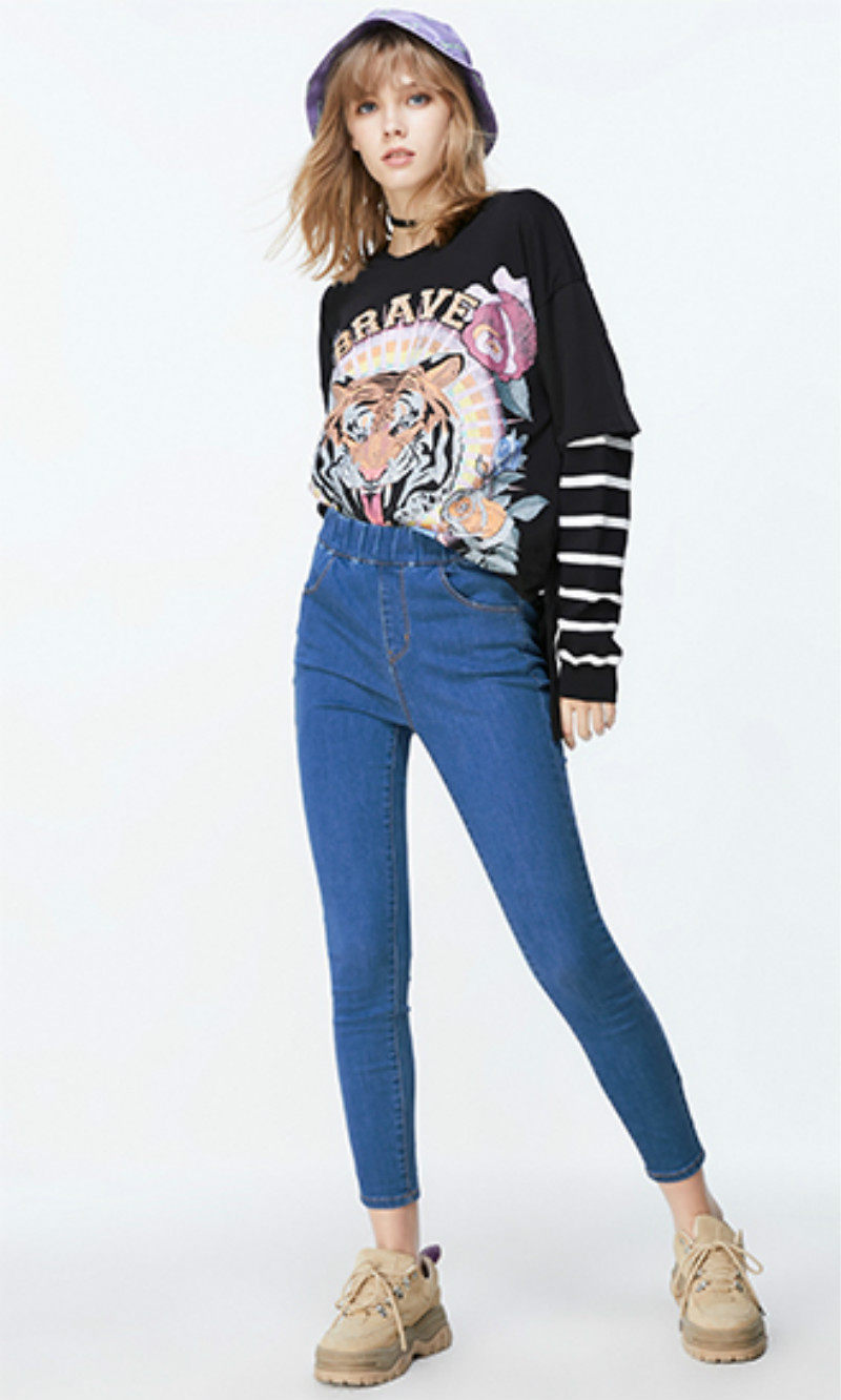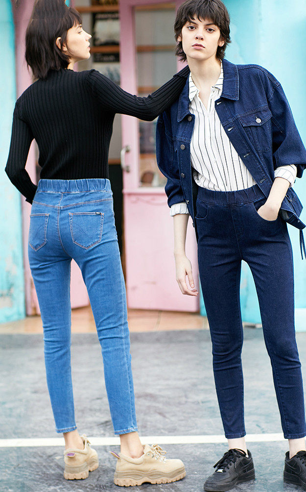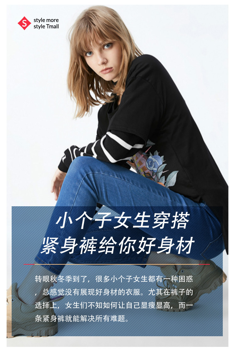 对于小清新风格的小个子女生来说,牛仔紧身裤是不错的选择,搭配短款白色或浅粉色上衣,可选择浅色的牛仔紧身裤,而在搭配暗色上衣时,可以选择深色的牛仔紧身裤,不同的穿搭能呈现不同的气质。