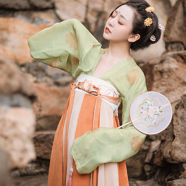 每个玩汉服的妹子都少不了要收一套经典的唐风襦裙,这一套真的可以作为入门款~上襦是偏短小样式的,搭配齐胸下裙,不仅显高显瘦,还能穿出纸片人的感觉,所以说唐风汉服最适合微胖的美人啦!喜欢花心思的小仙女还可以自己搭配一个妩媚艳丽的妆容,那一把小团扇,出街真的hin吸睛哦!