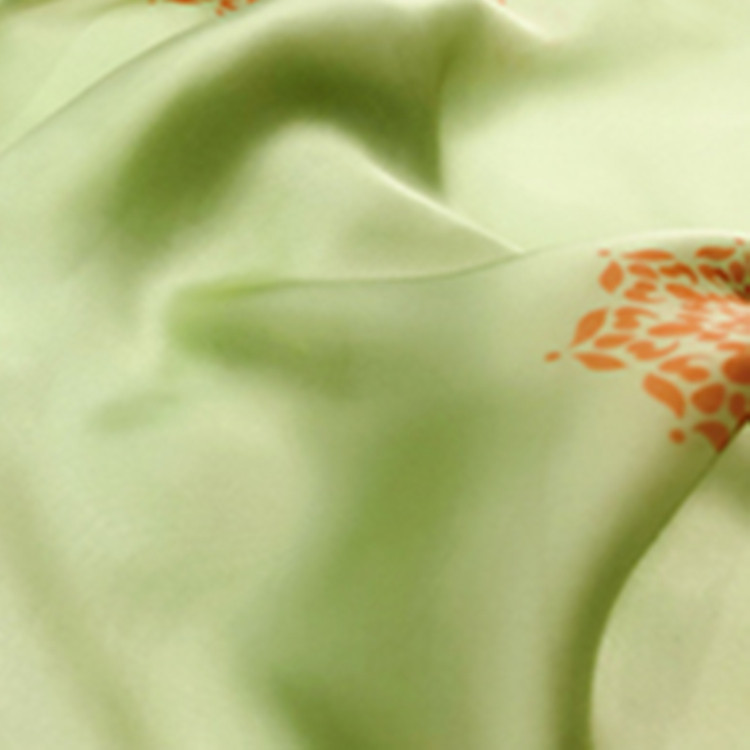 齐胸襦裙在唐朝的仕女中非常流行,将襦裙系于腋下,拉长下身的比例,行走、舞动时带有一种柔弱的飘逸感,这款齐胸襦裙的配色非常少女,上襦采用水绿色,清淡雅致,下身象牙黄与余烬红交相辉映,翩跹艳丽,整身点缀大片团花图案,象征太平公主花一样的锦绣年华。