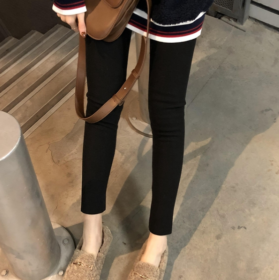 搭配很细的竖条纹纹理,上身巨显腿细的,不会有紧绷的感觉。选用加厚绒内里,上身特别的舒服保暖性真不是开玩笑的谁穿谁知道喽~采用高腰的弹力设计,上身也不会觉得勒,相反的贴合身材更显苗条,腰部还做了拼接豹纹,有一种小狂野的既视感。